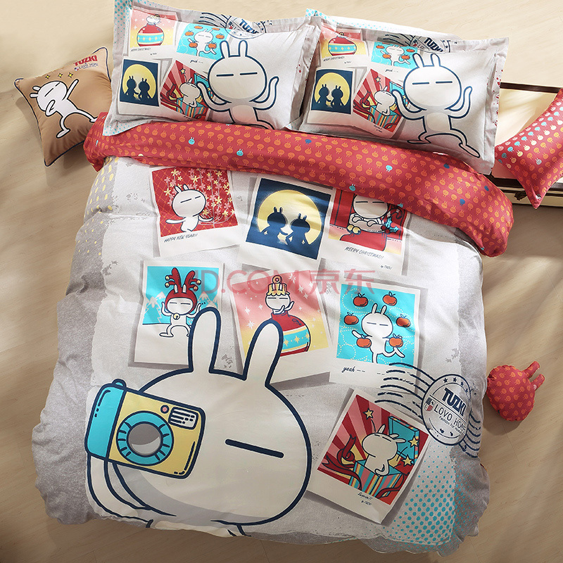 LOVO 罗莱家纺出品全棉斜纹床品套件四件套 兔斯基